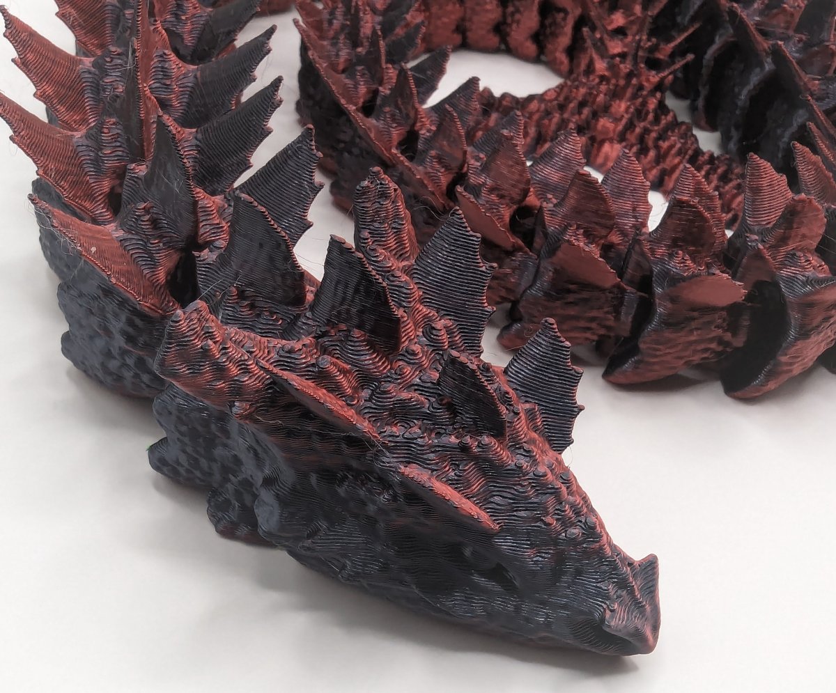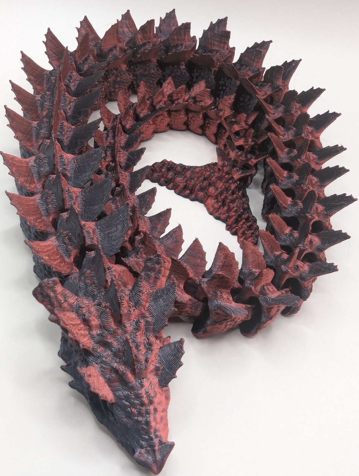 Introducing the majestic Aquatic Dragon in Red and Black: a handcrafted 3D printed Fidget Toy that will mesmerize and delight your children. Crafted with precision and finesse, this Articulated Aquatic Dragon has a captivating beauty that will be sure to make a statement. The body and head are articulated to move and sparkle!